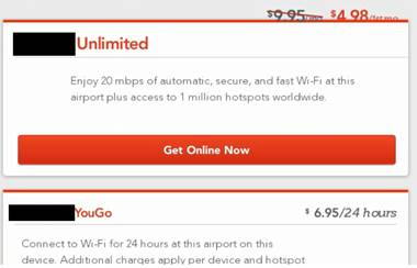 Con algo de rabia, activé la conexión Wi-Fi del smartphone en busca de alguna conexión a Internet que me llevarme a la boca para amenizar este rato de espera. Por suerte – aunque nunca sabes si son de fiar o no y hay que tomar precauciones extras – encontré redes abiertas y, supuestamente, conexión a Internet gratis. Me conecté, abrí el navegador y sí señor, NO era gratis. Era el típico negocio de Hotspot en el que había tres opciones, dos de ellas de pago y una de prueba de tan solo treinta minutos (y yo iba que estar en ese aeropuerto por más de seis horas).